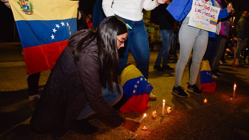 La actividad, denominada “Una luz por la libertad de los presos políticos”, fue convocada por el Comando Con Vzla-Chile, y -según sus organizadores- se realizó “en nombre de todas las víctimas de violaciones de DD.HH. en Venezuela y la exigencia permanente de la liberación de todos los presos políticos en el país”.