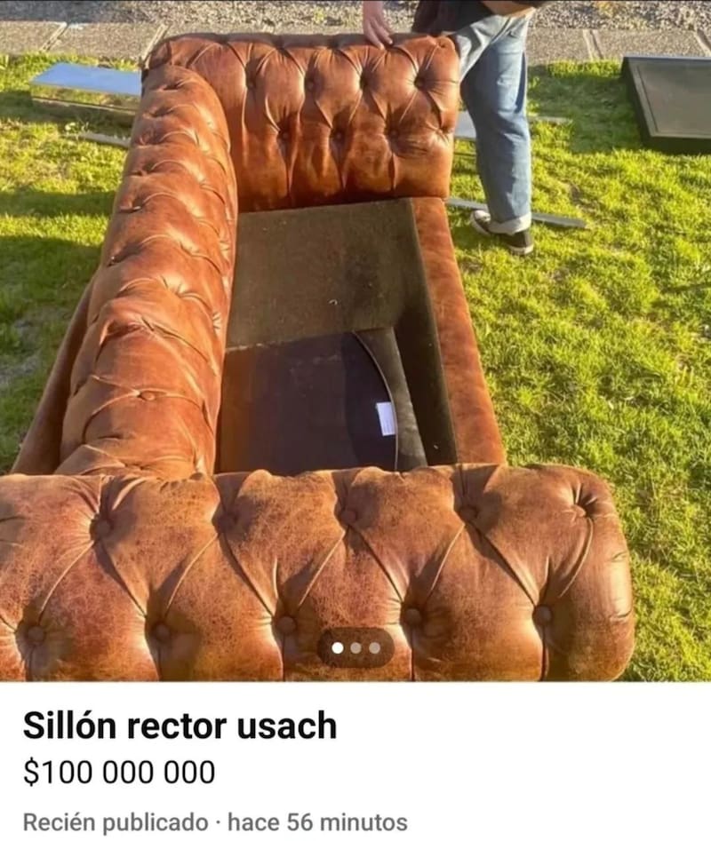En la ocasión, sacaron muebles de la oficina del rector Vidal, uno de los cuales -un sillón- terminó siendo ofrecido en un sitio de ventas por internet con la lectura “Sillón rector Usach”, y a un valor de 100 millones de pesos.