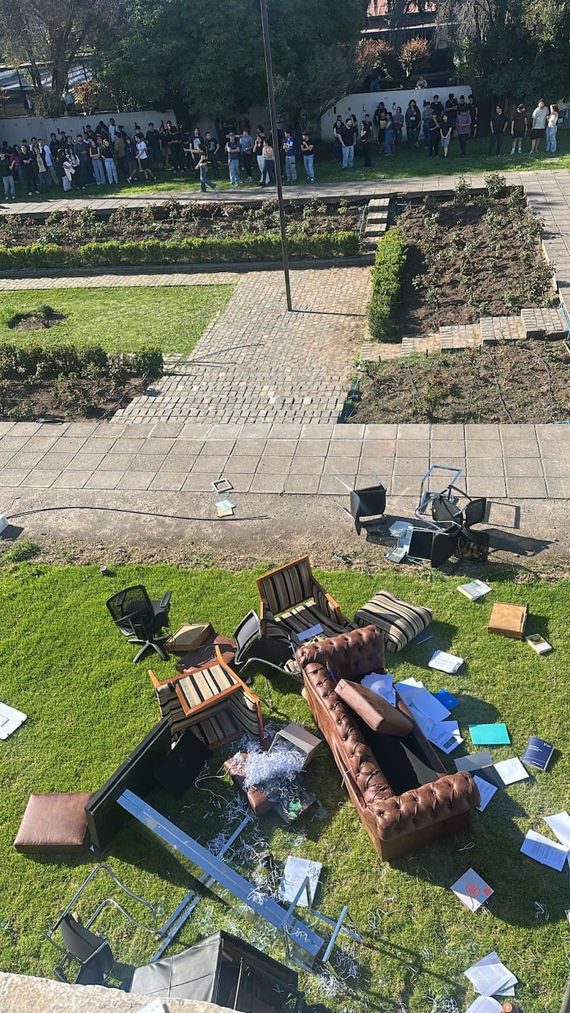 Estudiantes vandalizaron la oficina del rector, Rodrigo Vidal, y sustrajeron su mobiliario y otras especies. Un sillón que fue sacado del despacho de la autoridad universitaria apareció publicado en un sitio de ventas por internet a un valor de 100 millones de pesos.