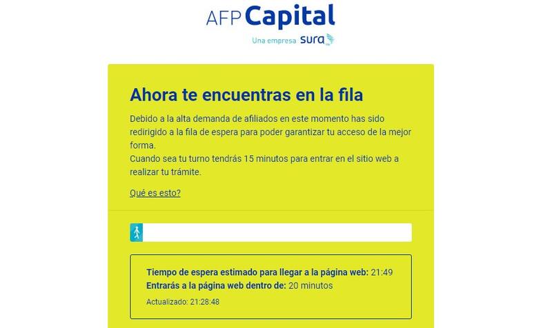 El sitio de AFP Capital, en tanto, generó una “lista de espera” virtual para atender los requerimientos de usuarios.