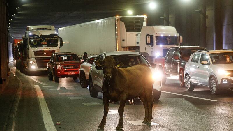 Por Daniela SilvaVacas sueltas en General Velásquez: camión que transportaba animales volcó en autopista central