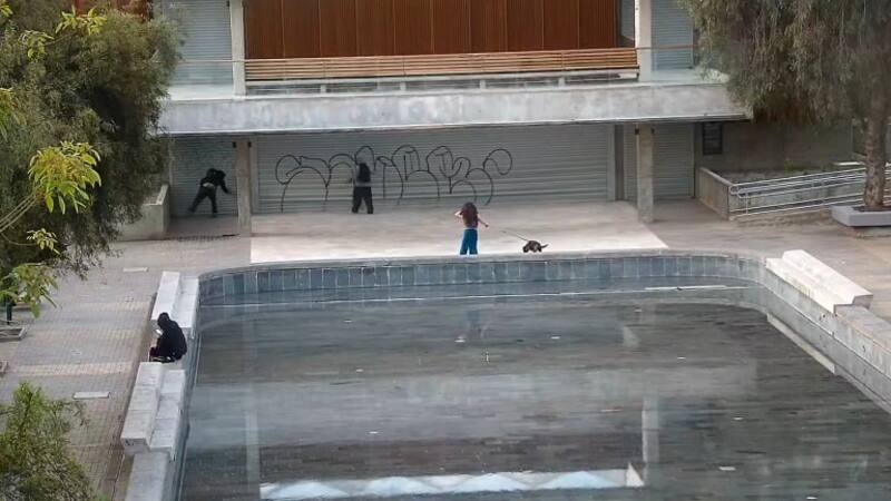 Sin embargo, durante la misma tarde de ayer, a eso de las 20.00 horas, dos sujetos encapuchados realizaron rayados -estilo grafitis- en su fachada, que a esa hora estaba cerrada. El hecho fue captado por las cámaras de seguridad del sector.
