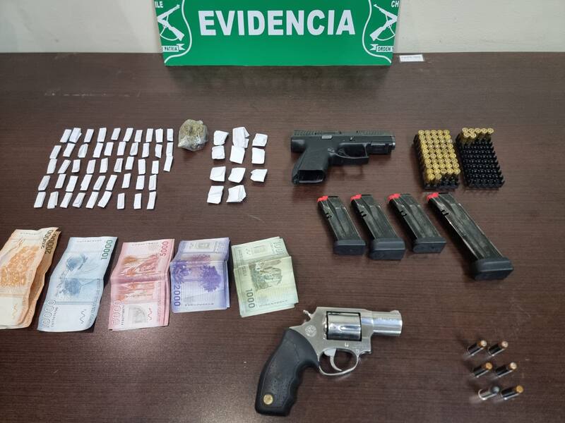 Tras revisar su interior, Carabineros constató que se encontraba un revólver, marca Taurus, calibre 38, que mantiene encargo por hurto del 05.07.2020. Además de una pistola marca CZ, calibre 9x19mm, que mantiene encargo por robo del 22-03-2022.