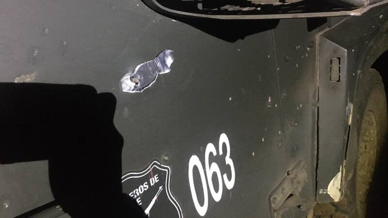 Otro de los ataques ocurrió un poco más al sur, en la comuna de Ercilla, Región de La Araucanía. Mientras se desarrollaba un relevo nocturno en la ruta R-560, un vehículo blindado de la institución policial fue blanco de armas de fuego de distinto calibre.