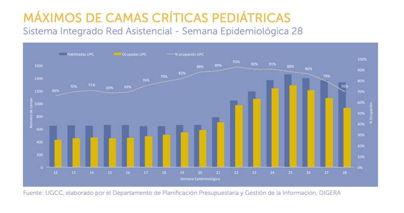 Según informó la jefa de la División de Gestión de la Red Asistencial (DIGERA), Fabiola Jaramillo, al 17 de julio de 2023 hay 1.295 camas críticas pediátricas habilitadas en el sistema integrado público-privado, lo que implica un aumento de 75,5% con respecto a las 738 camas de dotación basal.