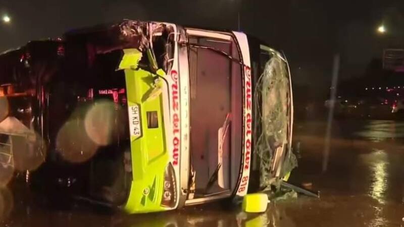 Un bus de dos pisos de la empresa Cruz del Sur sufrió un accidente durante la noche de este martes, al volcarse en la comuna de San Bernardo, en la Región Metropolitana.