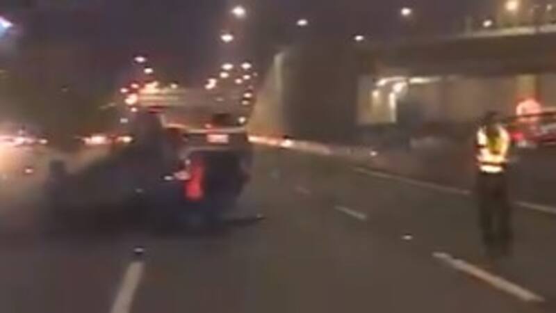 Según información preliminar entregada por Carabineros, un auto -tras chocar contra la barrera de contención- perdió el control de su dirección e impactó a un segundo vehículo, provocando su volcamiento.