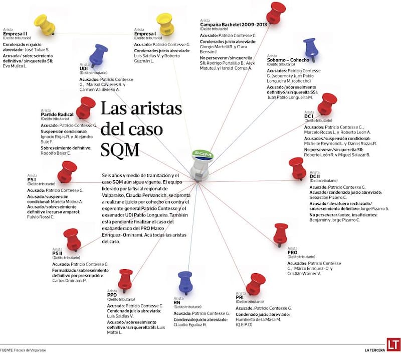 Es una de las investigaciones que más se ha prolongado en el tiempo. Y es que la cantidad de aristas que se han indagado, al menos 14, dan cuenta de la envergadura de haber revisado años de contabilidad de una de las empresas más importantes del país en busca de sus aportes ilegales a campañas políticas. Ya en la recta final estos son los condenados, los que no serán juzgados y quienes están en las horas clave de sus juicios.