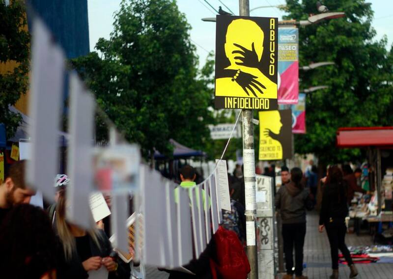 Carteles en contra de la violencia machista en el lanzamiento de la campaña #HombreSinViolencia. FOTO: AGENCIAUNO[/caption]