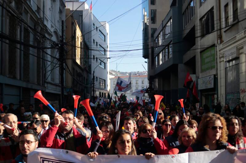 La Plaza Sotomayor es un peladero humano que inquieta a los dirigentes convocantes y a sus convocados. Están en Valparaíso, a minutos de que sean las diez de la mañana, hora partida de la clásica marcha que se realiza al mismo tiempo en que la Presidenta emite su última cuenta pública anual. Los porteños, argumenta una chica detrás de un lienzo de No + AFP, siempre llegan tarde. Puede ser eso, como no. O puede ser eso, más otros factores.