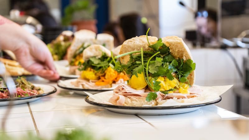 Luego, a pesar que noté varias novedades en la carta, decidí pedir dos viejos conocidos: los sándwichs de Arrollado de Malaya ($9.500) y Arrollado Huaso ($9.500). El de malaya tenía además pickle de piña, mostaza con semillas, hojas de cilantro, ralladura de limón y unas gotitas del mismo cítrico. Todo esto en una marraqueta grande y fresca, apenas crujiente por fuera y de miga suave en su interior. Me atrevería a decir que es el mismo pan que usaban en el local de Franklin, buenísimo. Y el sándwich lo mismo, excelente. Una mezcla de salado, dulce, ácido y algo leve de picante. Perfecto.