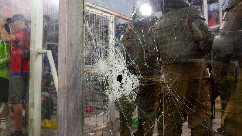En el partido entre la U y Colo Colo el domingo, alguien tiró un cortaplumas abierto contra los jugadores: el árbitro vio el objeto y ¡siguió adelante! Tampoco paró el partido cuando una hinchada lanzó bengalas contra la otra y provocó un pequeño incendio en las graderías. El bus que transportaba a los jugadores de Universidad de Chile fue impactado por piedrazos y los deportistas tuvieron que tenderse en el suelo para no recibir proyectiles. El arquero de Colo Colo entregó al inconmovible juez dos peñascos lanzados por la hinchada rival en su contra. Una dirigente dice haber recibido un puñetazo en el rostro. A la salida hubo desórdenes.