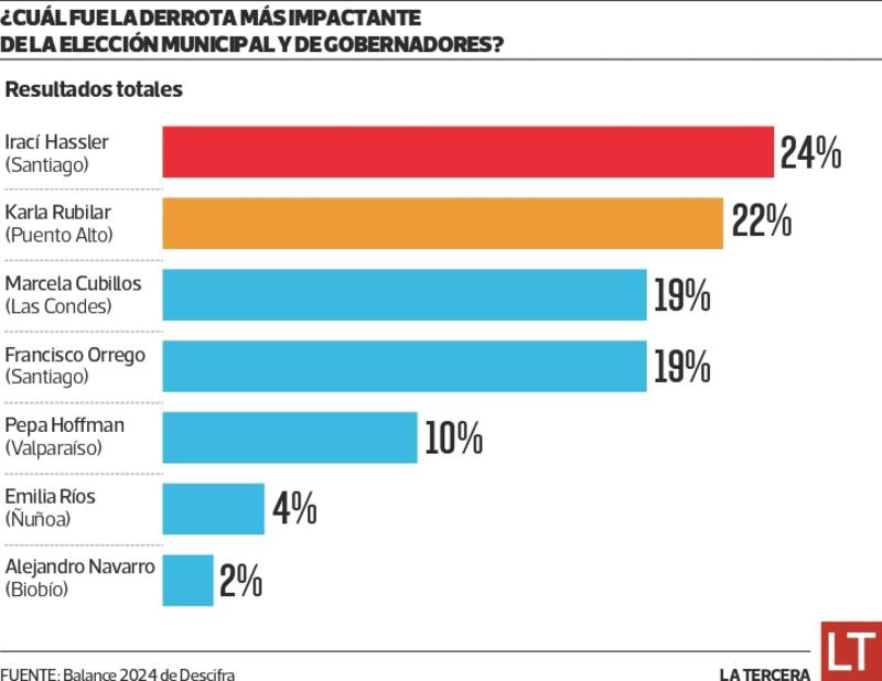 Además de los datos, también hay un componente subjetivo en desmedro de las mujeres. Según los resultados del Balance 2024 de Descifra, en la pregunta acerca de cuáles fueron las derrotas más importantes de la última elección, los tres primeros lugares se los llevaron Irací Hassler, Karla Rubilar y Marcela Cubillos.