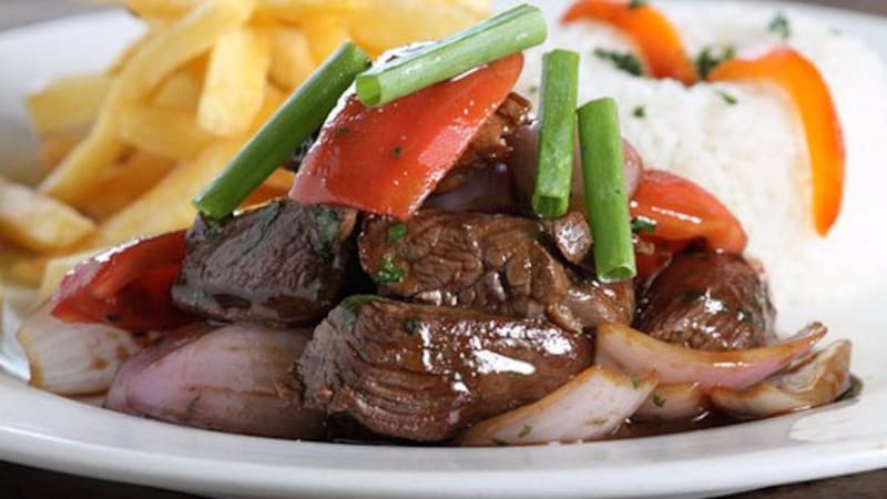 Pensando en testear otro plato que se encuentra en prácticamente todos los restaurantes peruanos del país, pedí de fondo un lomo saltado ($10.900), acompañado de una cerveza. A pesar de ser un plato de wok, muy rápido, tardó bastante en llegar. Probablemente porque mi pedido coincidió con una masiva llegada de comensales. Pero una vez en la mesa se veía bien, con un arroz bien amoldado, papas fritas cortadas a cuchillo y una buena cantidad de cubos de carne más cebolla morada, tomate, cebollín y algo de cilantro. La primera sorpresa fue que la carne era un blandísimo filete. Las verduras estaban duritas, pero se notaba que apenas habían pasado por el wok, por lo que carecían casi totalmente de esos tonos dorados que denotan la caramelización de sus azúcares y que tanto aportan en sabor. Por lo mismo, el juguito del lomo (filete) saltado resultaba más bien soso. Aún así, lo mejor del plato resultó ser el arroz blanco combinado con este líquido más alguna papita frita bien remojada. Pero de esa sazón peruana que nos conquistó hace ya 20 años a los chilenos, de ese suave y rico picantito, nada. De postre otro clásico: suspiro limeño. Este venía con un merengue -al parecer- mezclado con algo de moras, el que no estaba del todo mal pero que no combinaba de buena forma con el buen manjar que traía.