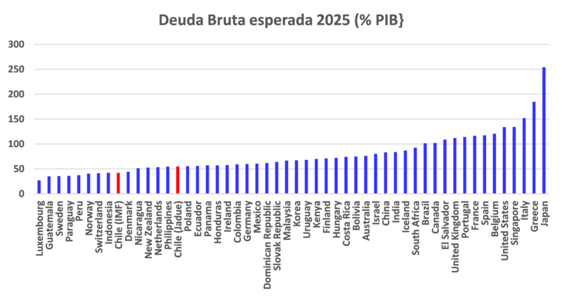 Gráfico Deuda Bruta esperada 2025 (% PIB)