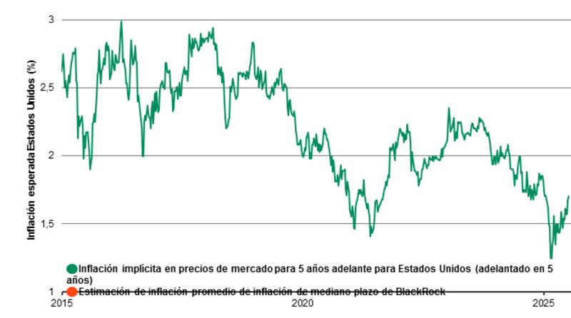 Gráfico: Inflación estimada por el mercado vs. proyección de BlackRock entre 2015-2025