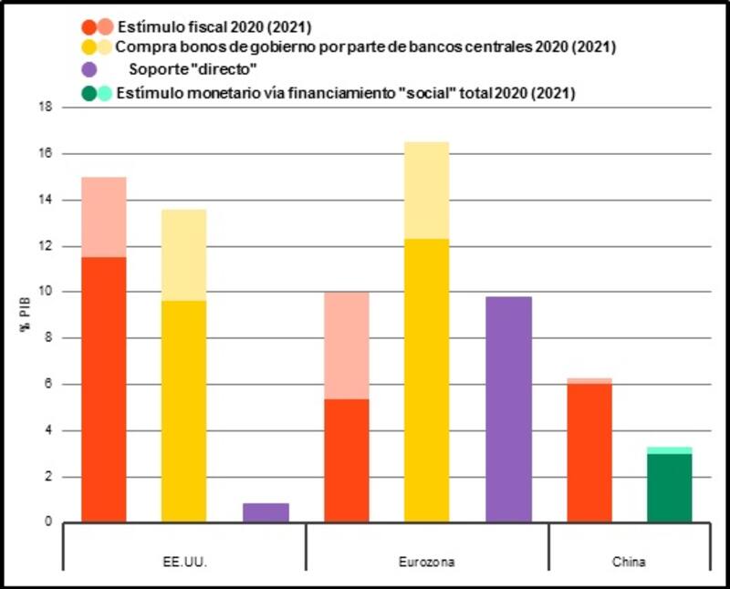 Estimaciones de apoyo fiscal y monetario en economías claves, 2020 y 2021: