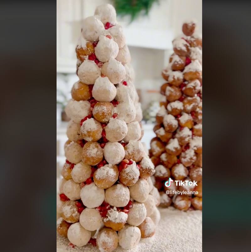 Seguimos con los árboles. Esta vez, con una idea de la tiktoker Leanna Laming, muy similar a la anterior, pero en lugar de forrar el cono con plástico ella lo hace con papel metálico. Y luego, en lugar de quesos o charcuterías, lo que pinchas son munchkins, unos tipos de donas más pequeñas circulares. Si no sabes ni quieres hacerlos desde cero, te sugerimos comprar munchkins en Dunkin Donuts. Perfecto para el postre y pasar la espera previa a la apertura de regalos. Revisa el tutorial completo >aquí<.