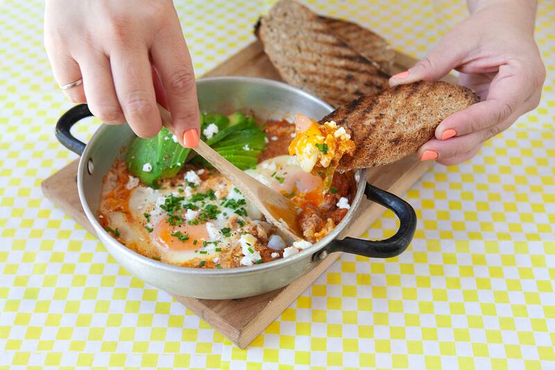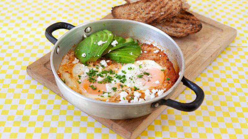 Nos compartió los platos estrella de su carta en el recetario de marzo, donde también figura la receta que nos enseñará a hacer este viernes. Se llama shakshuka, un plato especiado de Medio Oriente, que lleva salsa de tomates, paltas, queso y, por supuesto, huevo, entre otros ingredientes. A través de su elaboración dominaremos el difícil arte de crear un par de huevos pochados perfectos.