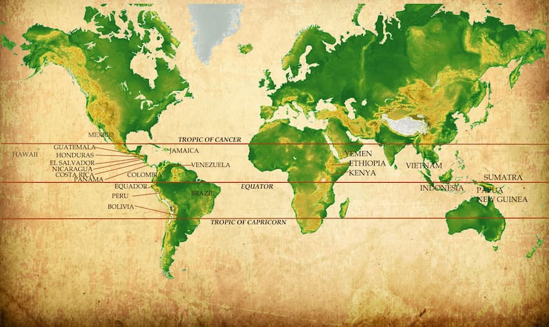¿Por qué el buen café parece venir siempre de los mismos países? Los destinos se repiten porque el café no crece en cualquier parte: necesita de condiciones climáticas específicas que solo se dan el llamado “cinturón del café”, la zona tropical “que abarca toda la línea del Ecuador, entre los paralelos 24º norte y 24º sur”, explica Cañas.