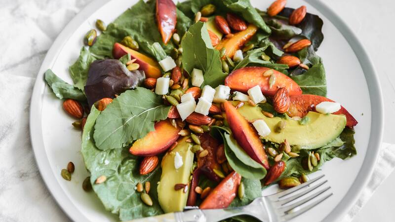 Ensalada de duraznos grillados con dressing de mostaza y miel