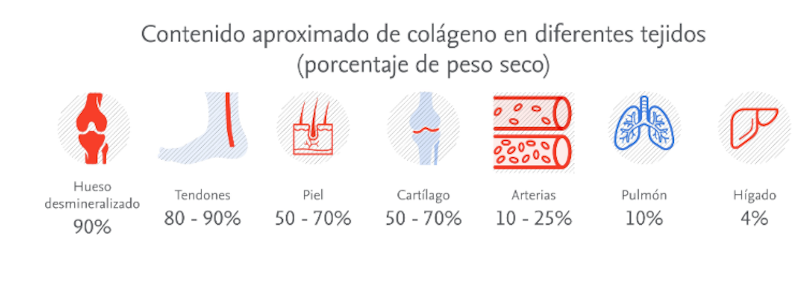 “El colágeno representa nada menos que el 25% del total de las proteínas del organismo humano”, añade Francisco Álvarez, académico de Química y Farmacia de la U. Andrés Bello Sede Viña del Mar, y es responsable de “formar fibras fuertes y resistentes que dan este sostén estructural”. Los huesos, por ejemplo, están compuestos en un 90% por colágeno, mientras que la mitad de la piel consiste en esta proteína, que incluso está presente en órganos como los pulmones y el hígado.
