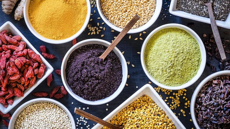 Muchos son productos extranjeros, o no propios de nuestra cultura gastronómica, como la espirulina —que se vende en suplementos—, el kale, la piña, la cúrcuma o los arándanos rojos, que para introducirlos como opción alimenticia se les añade el adjetivo de superalimento.