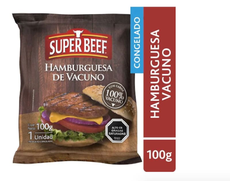 Se trata de una hamburguesa estándar: pesa cien gramos y curiosamente no presenta ningún sello de advertencia. Además, según específica en su envase, está hecha solamente de carne de vacuno. Aunque claro, tiene varias otras cosas también, pero nada proveniente de otros animales. Tal vez eso hace que, según dice el etiquetado, solo tenga 169 calorías.