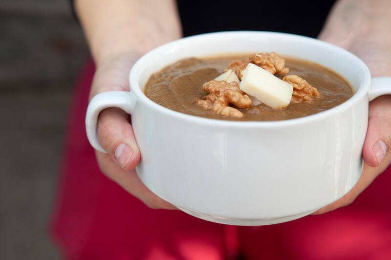 - Decorar con trocitos de queso de cabra y nuez molida.