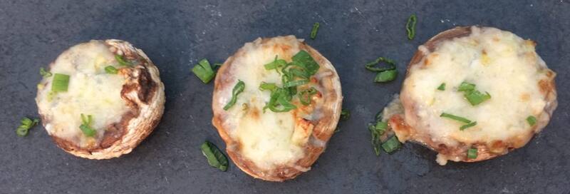 CHAMPIÑONES RELLENOS CON QUESO GORGONZOLA Y PERAS