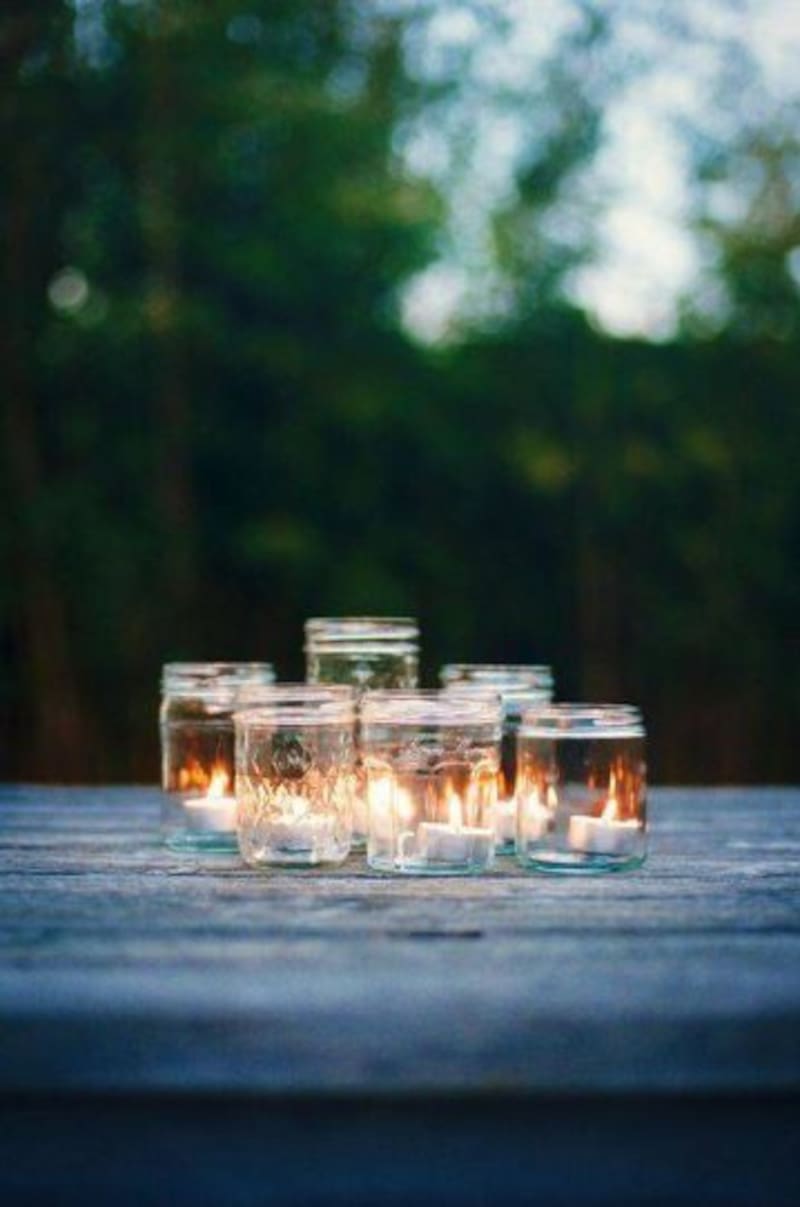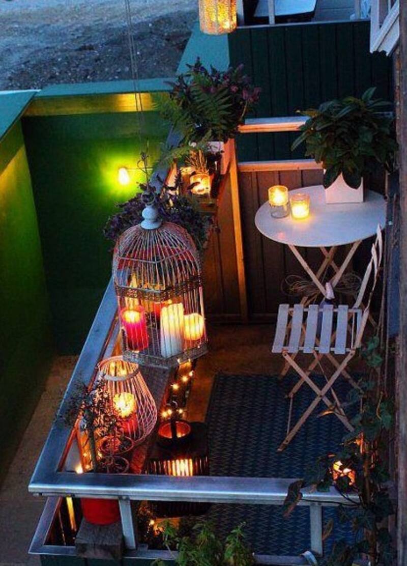 Hay que dejar atrás la idea de que una vela se pone solo sobre un plato o directamente sobre el borde del balcón. Se pueden juntar varias dentro de una jaula de pájaros o en frascos de vidrio y así, además de iluminar, embellecen el espacio.