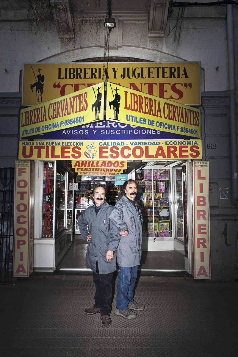 Los hermanos José (62) y Arturo (56) Fuentes Elordi nacieron y se criaron en la Librería Cervantes, una reliquia viva que lleva 110 años en la misma esquina de 10 de Julio con Portugal y que hace más de 60 años fue comprada por sus padres: el chileno José Fuentes, hoy fallecido, y la española María Luisa Elordi, quien tiene 92 años. Como buena vasca, ella trabajó infatigablemente en la librería hasta el año pasado, pero tuvo que dejarla debido una lesión a la cadera. Los únicos que siguen al pie del cañón, atendiendo público, manteniendo las impecables vitrinas y bajando productos de la bodega, son José y Arturo, siempre uniformados con sus cotonas grises y sus bigotes negros. “Toda nuestra vida ocurrió aquí. Los papás trabajaban en el local y del colegio nos veníamos para acá. Yo tenía 5 años y quería atender. Me subía a una silla para alcanzar los mesones y poder decir: ‘Señor, ¿qué necesita?’”, dice José. Arturo tiene otro recuerdo feliz: “Antes éramos librería y juguetería. Mi papá iba a una importadora de juguetes a comprar y me llevaba. Era una maravilla para un niño chico meterse a un galpón lleno de juguetes y que mi papá dijera ‘elige uno para Navidad’”. Aseguran que la librería es un trabajo sacrificado, pero disfrutan el contacto con los clientes. “Todos nos conocen, se quedan conversando y el tiempo pasa volando”, cuenta Arturo. Cuando bajan la cortina, se van caminando a su casa, que está a dos cuadras. “Hasta hoy le agradezco a mi padre que tenemos el local aquí y la casa al frente”, dice José.