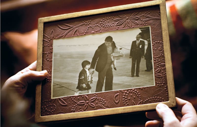 Macarena Aguiló guarda algunos recuerdos de su niñez que la ayudan a recordar, como esta imagen en la que aparece en la loza del aeropuerto de Chile con su tío, a punto de tomar el avión que la llevará a Francia, donde se reencuentra con su madre, un año después de su secuestro. "Siento que he ido reconstruyendo de a pedacitos mi vida, y que solo terminando con la impunidad podré cerrarla", dice la documentalista.