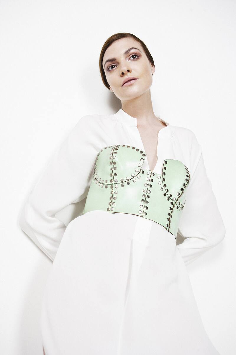 Vestido, $165.500, Cher. Arnés, $ 25.000, Twenty-Eight Leather.[/caption]