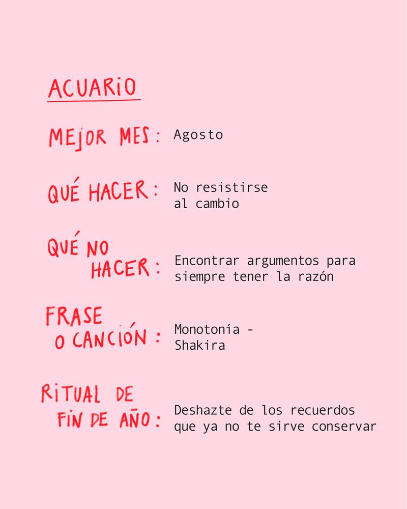 Reformúlate sin miedo, sin presión, sin tanta exigencia, mi querida Acuario. El mundo se beneficiará de tus procesos internos, pues veremos a muchas abrirse camino e interesarse en temas comunitarios, justicia social o participación. Encontraremos a muchas nativas enfrentando el cambio climático, organizando mujeres o exigiendo visibilidad para la comunidad que pertenecen.