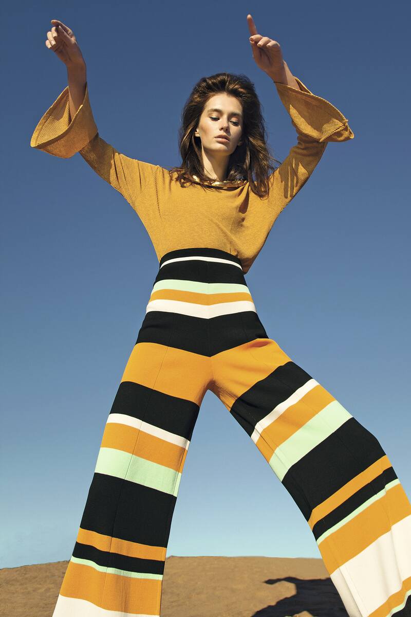 Polera Mango, $ 21.990, Falabella. Pantalón, $180.000, Cher. Collar Meche Correa, consultar precio en tienda Porquetevistes.[/caption]