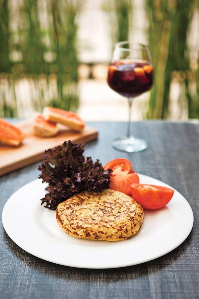 La clásica tortilla de papas ($ 3.600), la tabla vuelta al ruedo, que incluye paleta ibérica, morcón ibérico de Bellota y queso manchego ($12.700, para 2-3 personas) y que se sirve con pan con tomate y se puede acompañar con una jarra de sangría ($ 7.500, 1,6 litros) o un refrescante Aperol Spritz ($ 4.000). El dato: todos los sábados y domingo a las 14:00 preparan en la terraza una paella para comer en el restorán ($ 5.500 la porción). También hay tártaro de atún ($ 5.500) y crema de zapallo ($ 2.600).