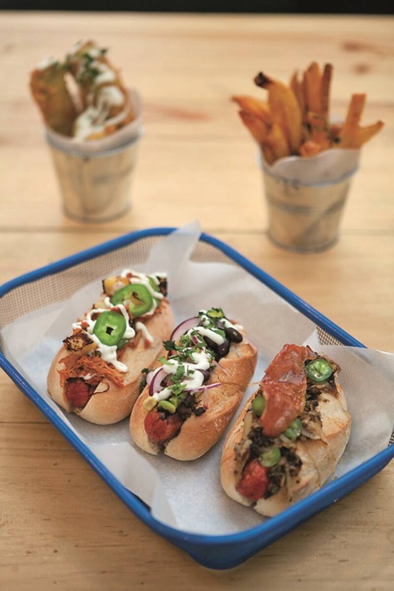 Con hash brown –una tortilla crocante de papas ralladas–, tocino, pepinillo y syrup de miel de palma; palta, tomate, porotos negros, cebolla morada, cilantro y alioli, y pulled pork, piña grillada, ají y crema ácida ($ 6.500).