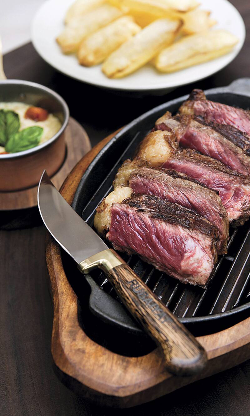 1. El corte Queen Beef: la parte más noble del clásico ojo de bife de una selección de vaquillas de 15 a 18 meses. Pieza imperdible de 650 g para compartir, que destaca en sabor y ternura ($ 33.500). Acompañar con papas suflés infladas a la perfección ($ 4.900) o con el quinoto con queso de cabra y chalotas confitadas ($ 4.900).