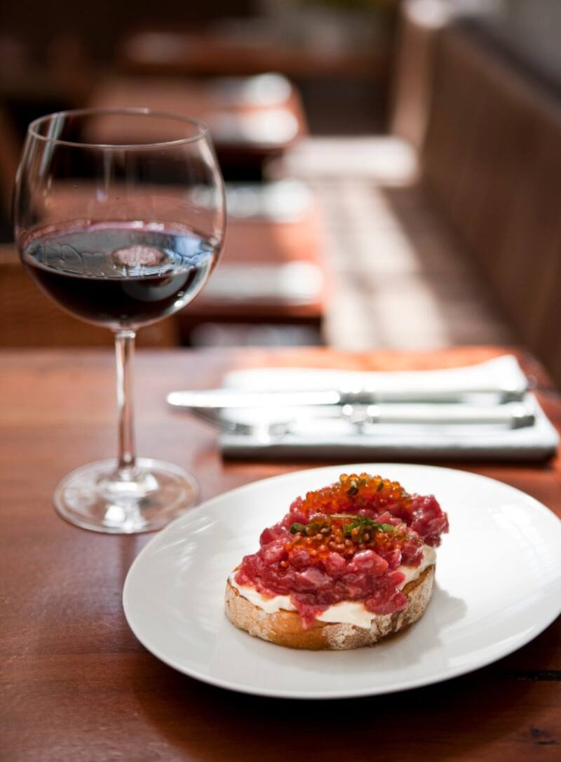 Tártaro de ternera con Ikura sobre mayonesa de Pan/Bar.[/caption]