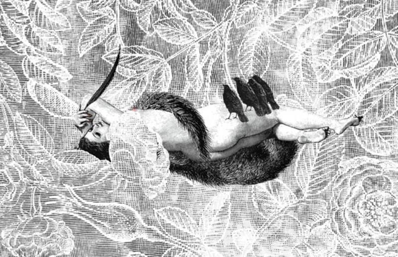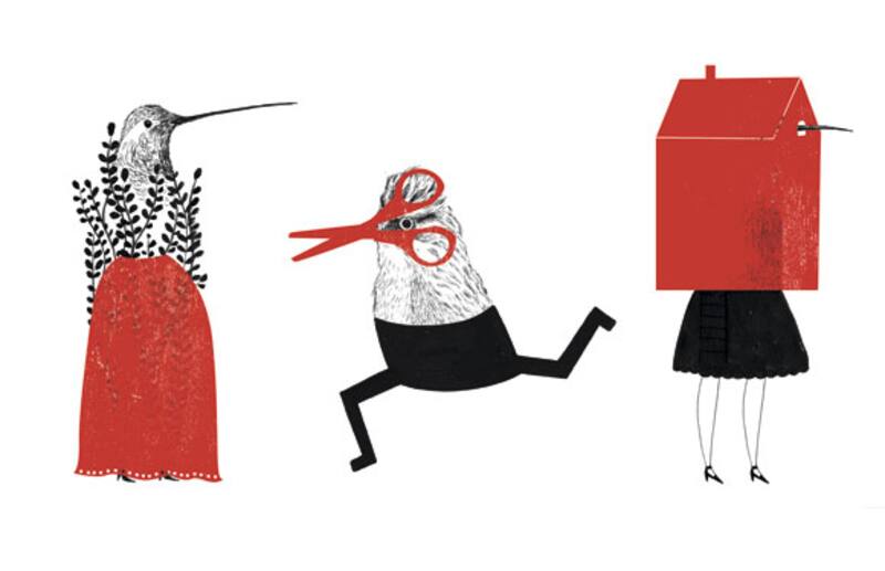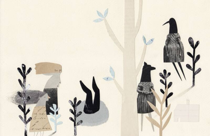 Del lápiz de Alejandra –y de su computador, porque gran parte de su trabajo es digital– salen, en efecto, seres extraordinarios que dan cuenta de su mundo particular: cuerpos que en vez de cabeza tienen una bandada de pájaros, rostros de ramas y espinas, hojas y flores enredadas entre vísceras y corazones de un rojo furioso, aves que visten faldas coquetas o piernas de mujeres que parecen brotar de una nube. Sus trazos y collages remiten a los grabados de medicina del siglo XIX, quizás también a los cuentos de Edgar Allan Poe, a las pinturas surrealistas del holandés Hieronymus Bosch, a los versos tristes de Alejandra Pizarnik. Pero su estilo no es tan marcado ni tan evidente, porque su trazo está en permanente tensión con los textos que ilustra: tiene, ante estos, una reverencia inicial que asume con humildad, tras la cual suelta al viento el ave de la imaginación, que recorre durante días los rincones de su memoria, posándose sobre el fotograma de un filme, el acorde de una canción o la luz tenue que entra por una ventana, hasta que regresa, triunfal, con la certeza de haber encontrado, por fin, el clima, el tono que teñirá toda la ilustración. Entonces, y solo entonces, comienza a dibujar.