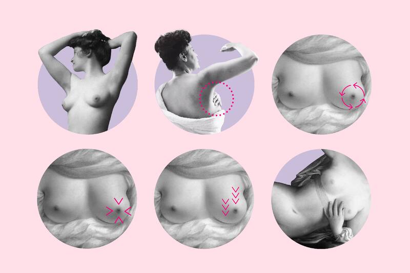 3. Examina cada mama con la yema de tus dedos, realizando un movimiento circular para detectar pequeñas masas.
