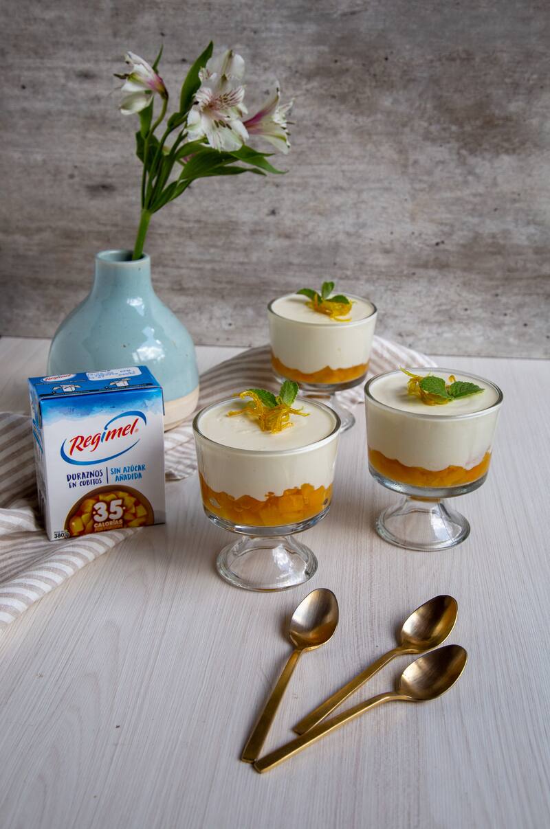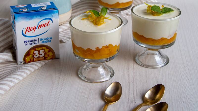 Aprende a cocinar una copa de duraznos y panacota de limón