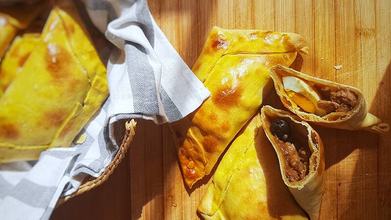 7. Batir un huevo con media taza de leche y pincelar las empanadas.