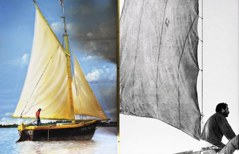 Mi amigo Quémil Ríos también era periodista. Se compró esa vieja lancha chilota de pura melancolía: recordaba cuando los días de buen tiempo se llenaba el mar de Calbuco de velas blancas que venían de la cordillera lejana. En la escuela básica él se paraba en el asiento a ver esas naves, que como gaviotas venían trayendo leña, madera, papas y frutos exóticos del campo. Los hombres en sus cubiertas saltaban a tierra cansados, pasados a humo y maltratados: los viajes que hoy duran una hora a motor, a vela podían tardar días o semanas según el viento. La navegación era brutal y muchas veces trágica.