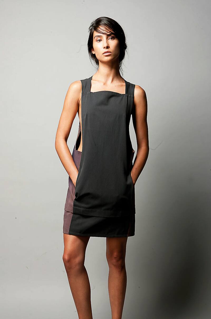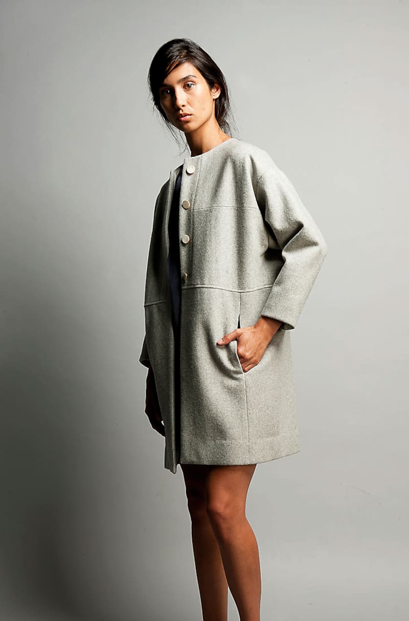 Próximamente lanzará su primera colección de alto invierno. Con saldos de paño de lana de Bellavista Tomé, encontrados en varias tiendas de telas de Santiago, está confeccionando abrigos y chaquetas. Además, vestidos cortos y blusas de seda, y pantalones a la cintura y rectos en lanilla. Los colores: negro, gris marengo y perla, azul, morado y palo rosa.