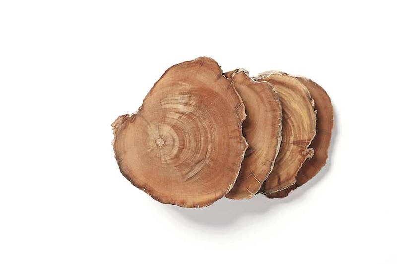 El nudo en el tronco de la araucaria se conoce como picoyo, una madera sólida, con alta concentración de resina, de color ámbar. Es escaso y debe ser extraído del árbol caído naturalmente, por lo que cada vez menos gente se adentra en los bosque a buscarlo. $ 24.000, set de seis, en Cordillerana.