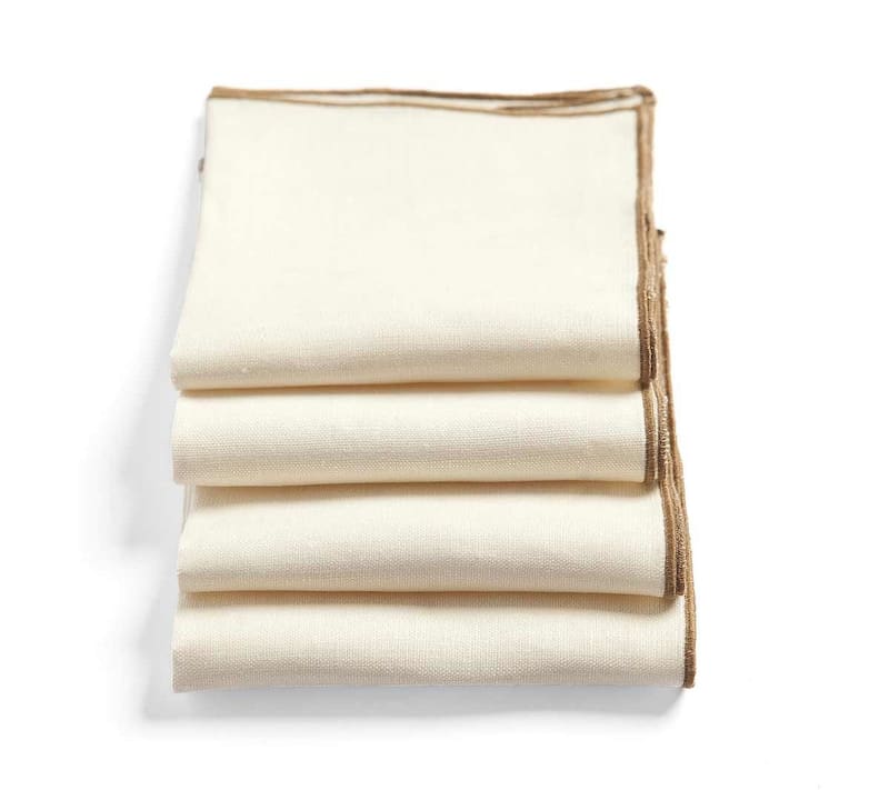 Hechas con saldos de lino 100% natural de las antiguas fábricas de Bellavista Oveja Tomé, estas servilletas son un verdadero tesoro. $ 12.000 las cuatro en Manos del Alma.