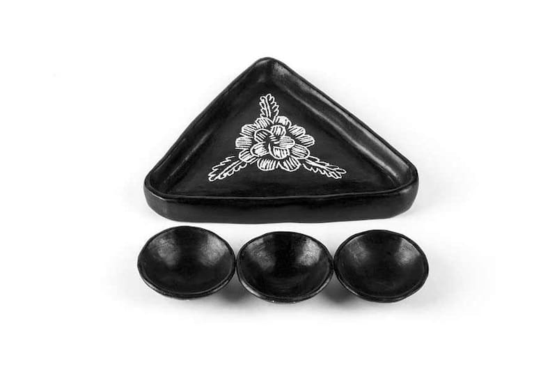 A 30 km de Chillán, un grupo de 11 mujeres ha hecho de la greda su vida. Elegidas Tesoros Humanos Vivos en 2014, han aprendido esta técnica de generación en generación. Hoy la más joven tiene 45 años. Bandeja con pocillos, $ 5.800 en