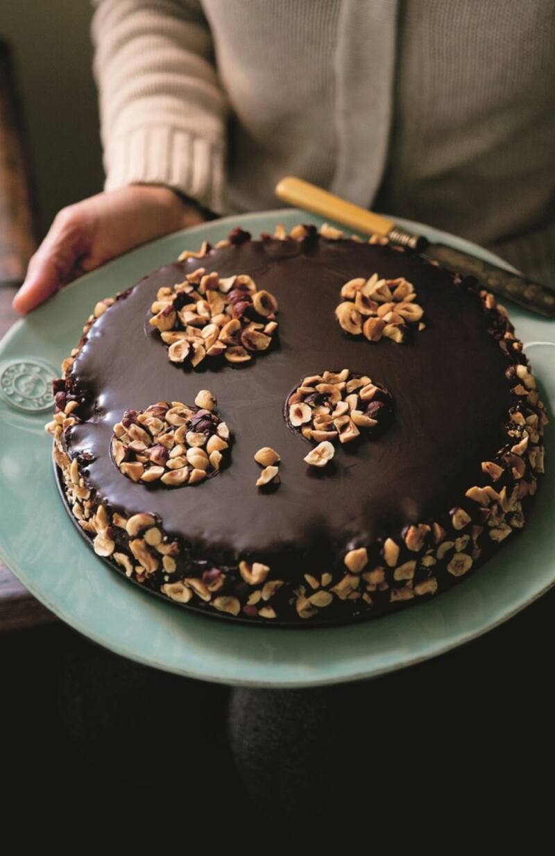 5. Preparar el glaseado. En otro bol colocar el chocolate y café o licor y derretir a bañomaría. Retirar del fuego y agregar, de a poco, batiendo, la mantequilla. Con una espátula cubrir la superficie y los bordes del queque. En forma decorativa distribuir las avellanas picadas reservadas sobre la superficie y los bordes.
